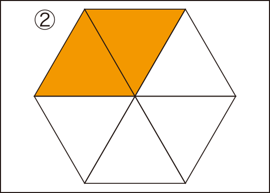 ある法則で、図形が変化しています。その法則が何かを見つけ、次にくる図形が①~③のどれになるかを、答えてください。