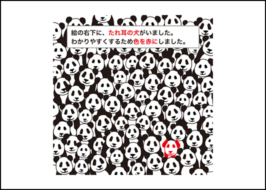 ずらりと並んだパンダたちの中に、1匹だけ犬がいます。どこにいるでしょう?