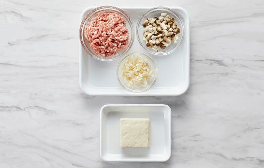 豚ミンチと豆腐にきのこを入れて