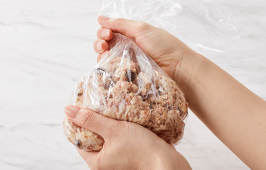 〈A〉の材料をすべて食品用ポリ袋に入れてムラなく混ぜ合わせ、2つに分けて形を整える。