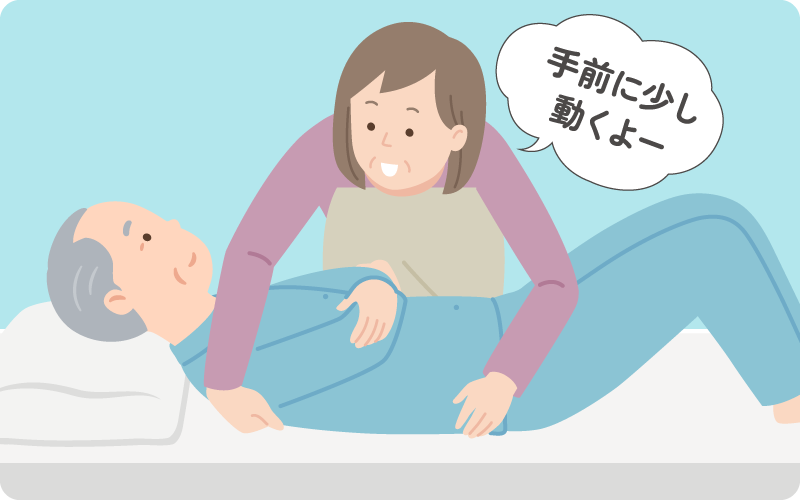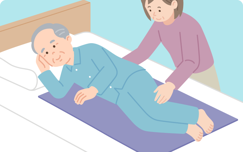 実は、ベッド上で体を「持ち上げて動かす」のは、本人にとっても介助者にとっても大きな負担です。そこで大切なのが、「滑らせる」介助です。