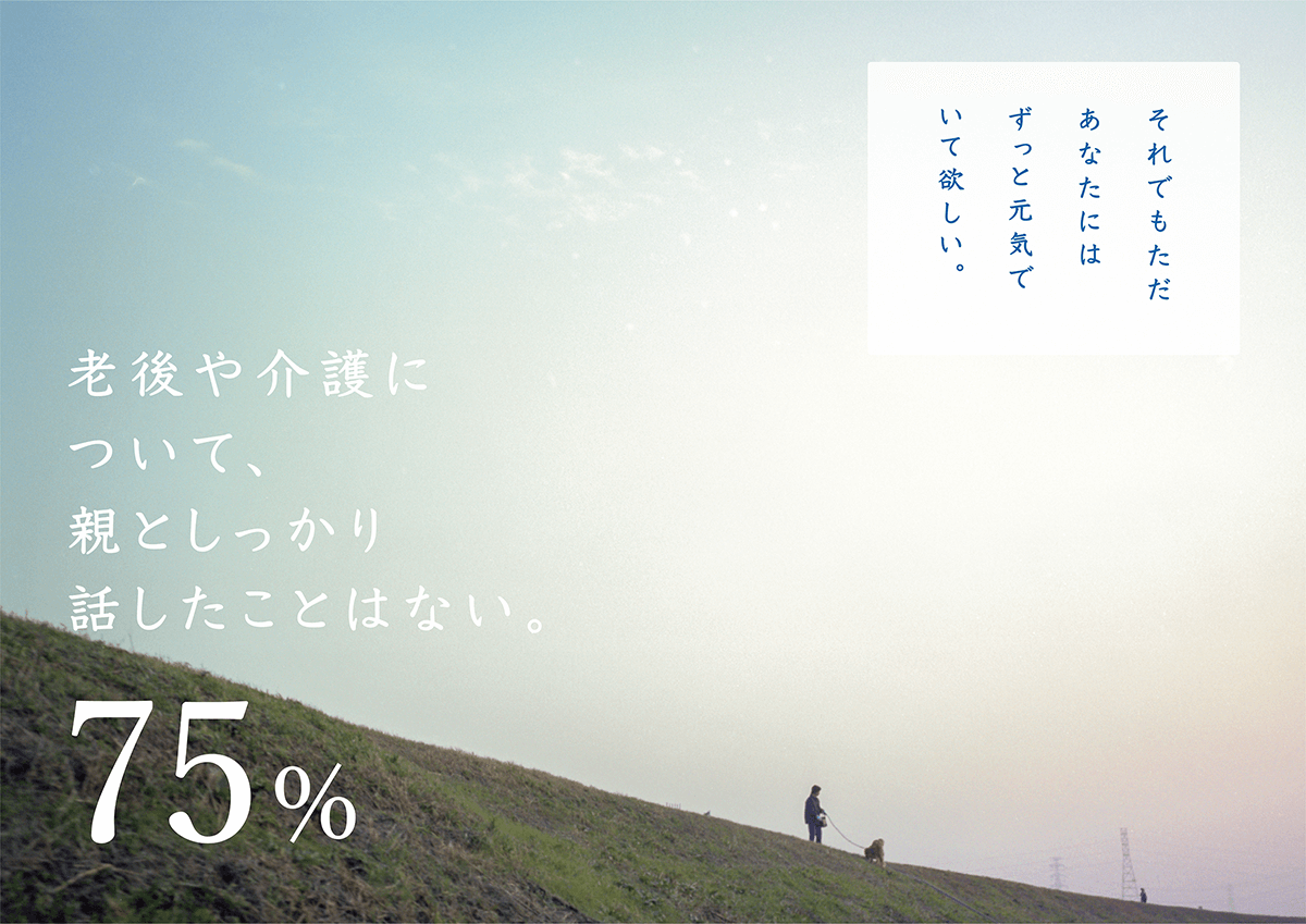 第三弾である今回は、『60歳以上の親を持つ子世代』と『60歳以上の親世代』の合計2,000人に「介護」について親子で話し始めるタイミングや、働く人の介護について焦点を当て調査しました。その一部をご紹介します。